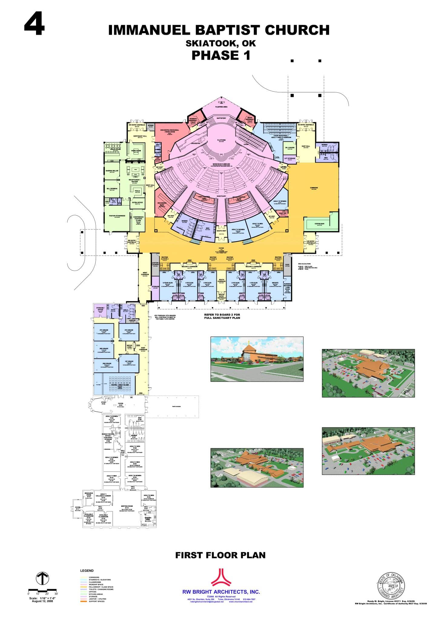 The Master Plan for 800 that RW Bright Architects, Inc. designed includes a sanctuary and a multi-purpose building that will in the long term place all of their facilities on one side of the street. Phase 1, the sanctuary building, was completed in 2011.