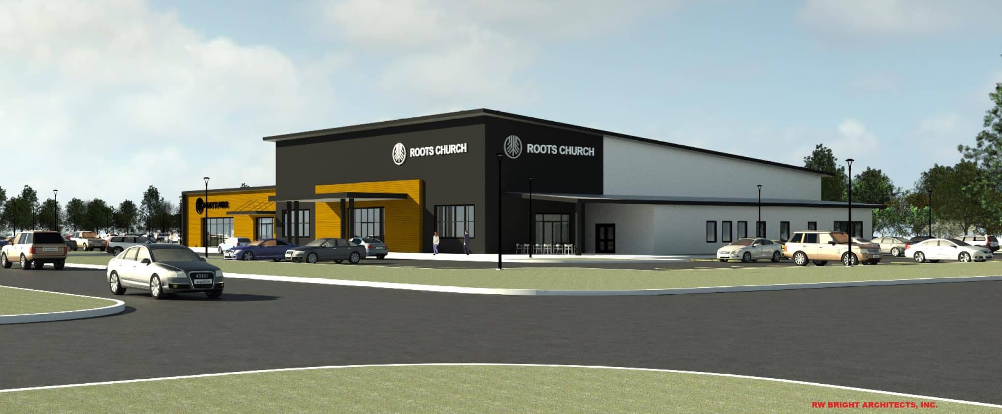 Roots Church in Tahlequah, Oklahoma is an entirely new 25,166 sf facility that will be constructed in 2026. It includes a sanctuary, a large lobby area, an office space, and a children’s wing that will serve for classroom, nursery, and dayschool use during the week. Since it has moveable seating, the sanctuary space can serve as a fellowship space as well. The lobby also includes a café area that will be in use on Sundays and open to the public throughout the week.