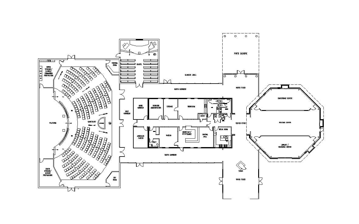The original building will be converted to office space to allow administrative staff to grow along with the congregation. The first phase will add badly needed fellowship and educational space, as well as office space. As the congregation grows, a permanent sanctuary will be constructed for conducting contemporary services, and a chapel will be built for traditional services, prayer and small weddings and funerals.